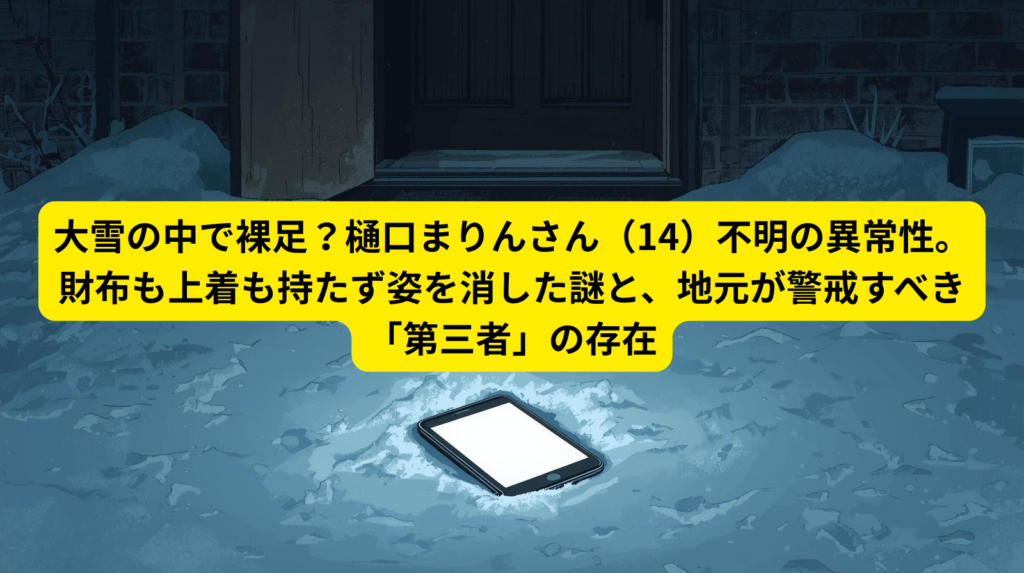 大雪の中で裸足?樋口まりんさん(14)不明の異常性。財布も上着も持たず姿を消した謎と、地元が警戒すべき「第三者」の存在