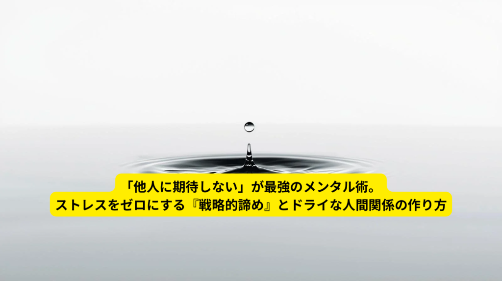 「他人に期待しない」が最強のメンタル術。ストレスをゼロにする『戦略的諦め』とドライな人間関係の作り方