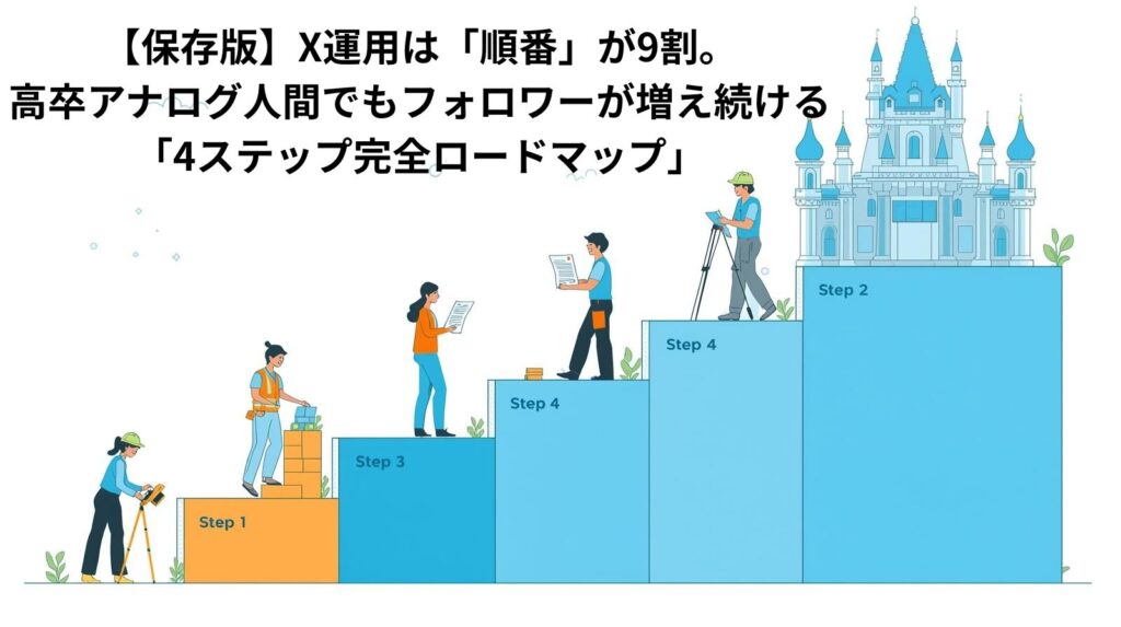 【保存版】X運用は「順番」が9割。高卒アナログ人間でもフォロワーが増え続ける「4ステップ完全ロードマップ」