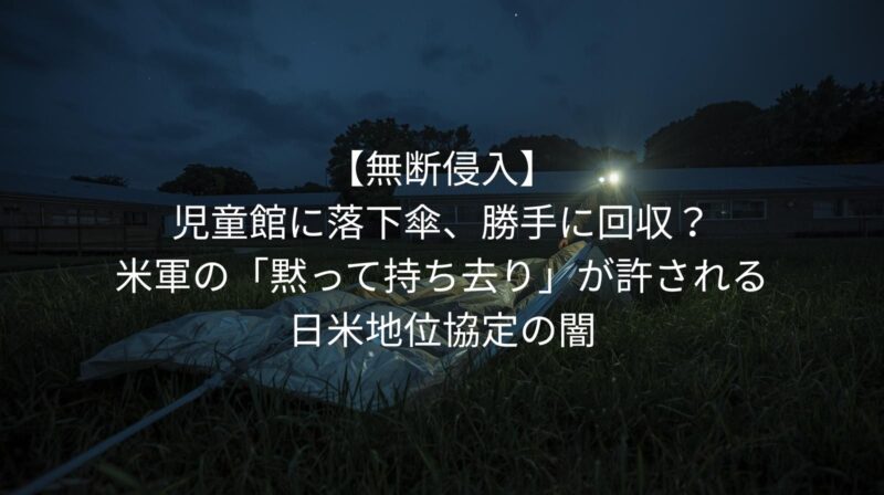 【無断侵入】児童館に落下傘、勝手に回収?米軍の「黙って持ち去り」が許される日米地位協定の闇