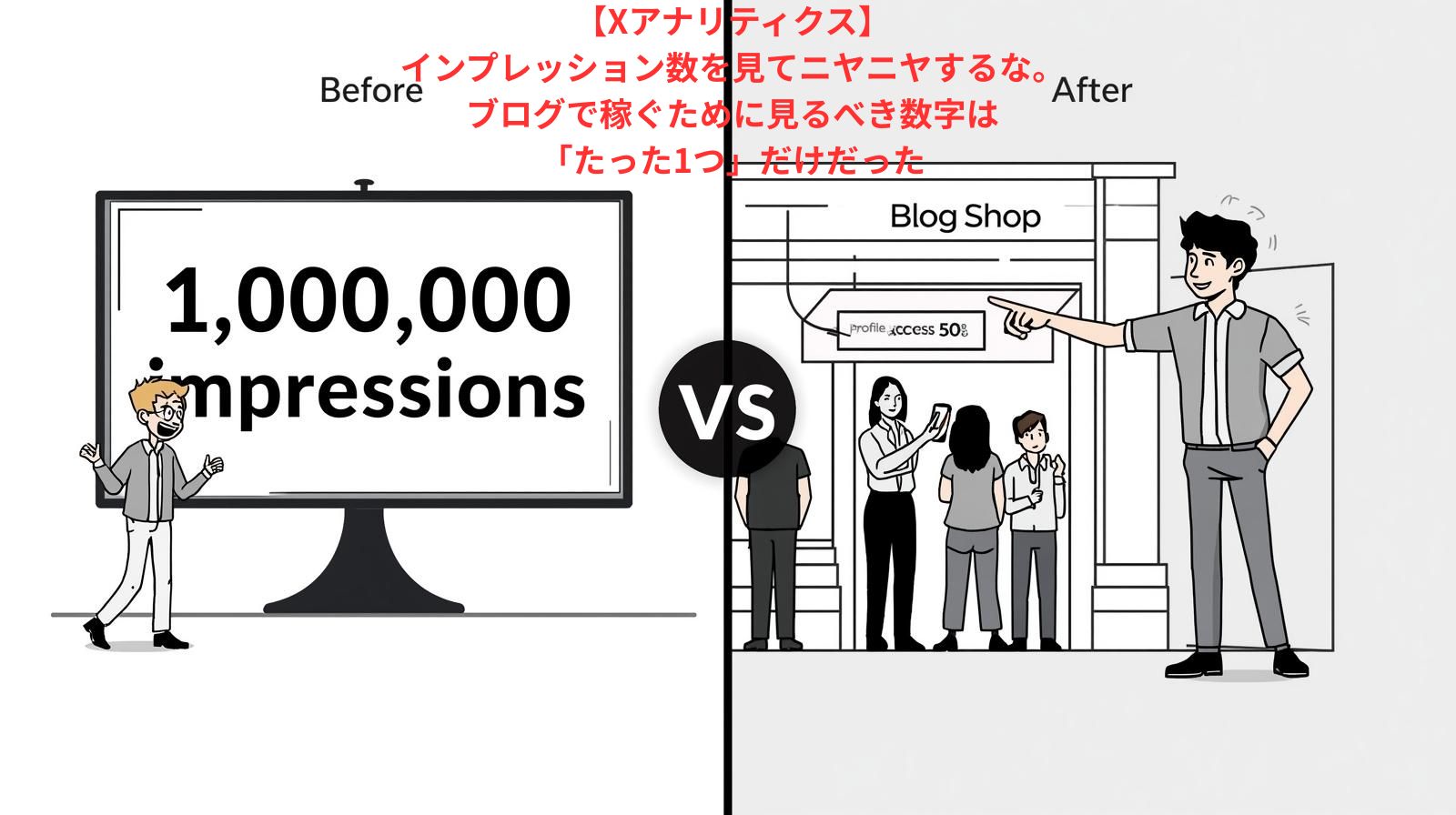 つまり、「プロフィールアクセス数」こそが、Xという道路から、あなたのお店(ブログ)への「入店数」なのです。