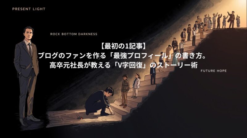 【最初の1記事】ブログのファンを作る「最強プロフィール」の書き方。高卒元社長が教える「V字回復」のストーリー術
