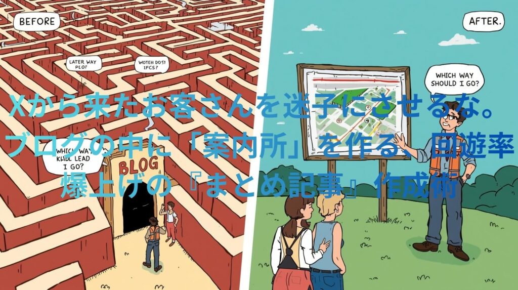 Xから来たお客さんを迷子にさせるな。ブログの中に「案内所」を作る、回遊率爆上げの『まとめ記事』作成術