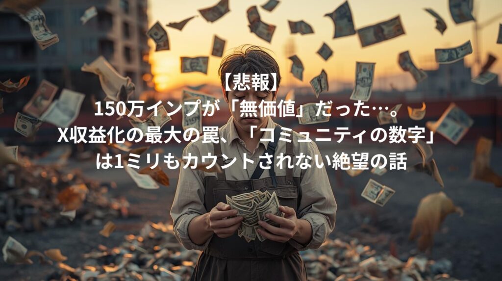【悲報】150万インプが「無価値」だった…。X収益化の最大の罠、「コミュニティの数字」は1ミリもカウントされない絶望の話