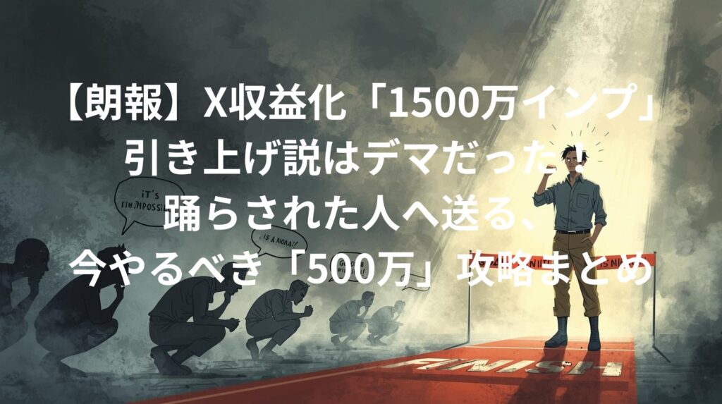【朗報】X収益化「1500万インプ」引き上げ説はデマだった!踊らされた人へ送る、今やるべき「500万」攻略まとめ